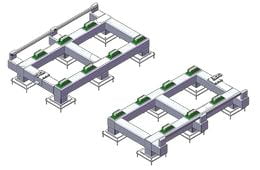 • Guiamento: Trilhos, sistema diferencial ou AGV
