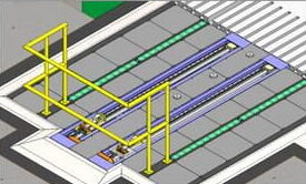 Para prensas de tryout desenvolvemos uma solução de troca de ferramentas onde todo o dispositivo fica embutido no piso, ficando acima do piso somente a subplaca e seus acionadores.
